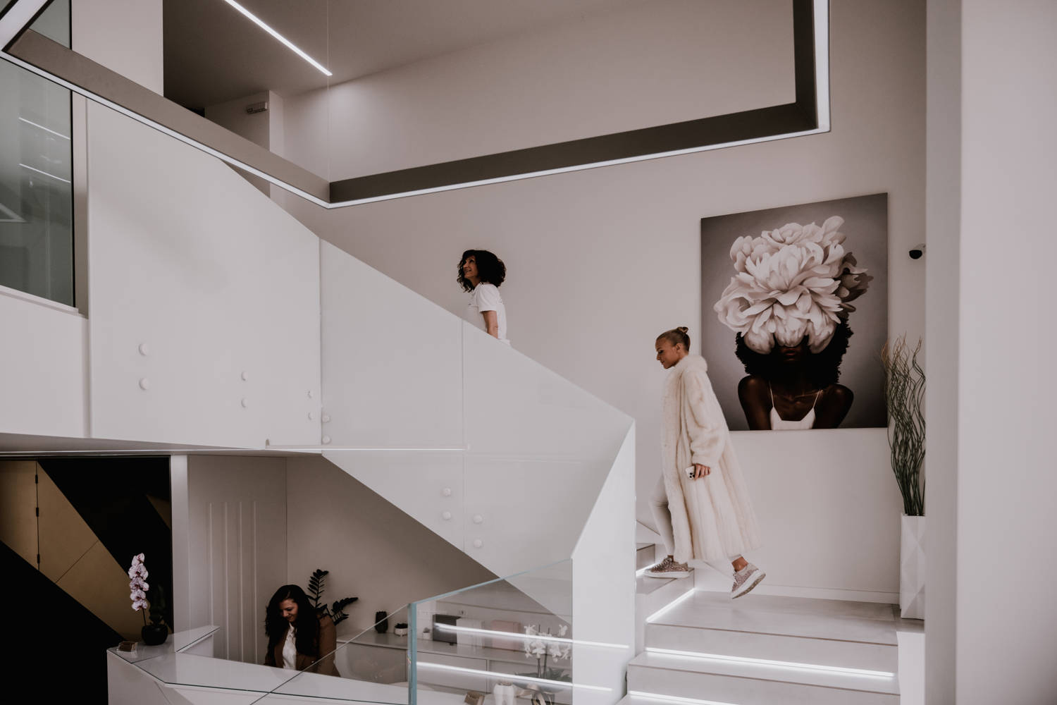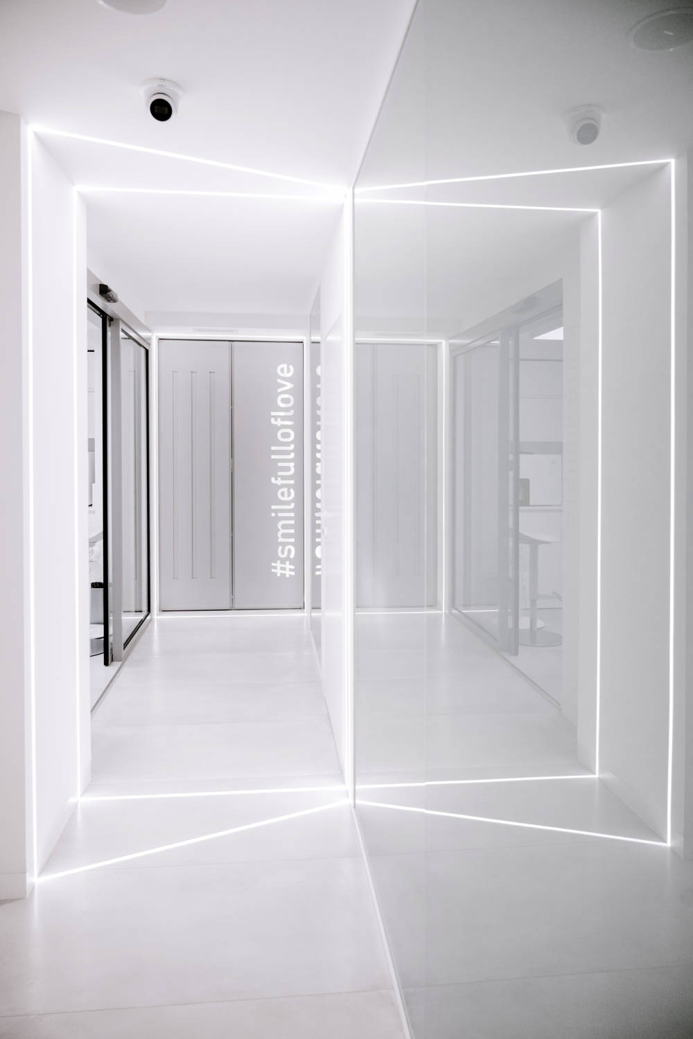 Проектът се разгръща на 2 нива, 5 дентални кабинета, зона за изчакване и релакс, фреш зона, фотостудио, стерилизационна и зона за персонал. Дизайнът е изчистен, функционален и „космически“. Влизането в клиниката е подчертано от интересни триизмерни осветителни тела, които менят визията си спрямо позицията на наблюдаващия. Стъкло и плът се редуват и създават усещането за чистота и стил. Множество светлинни „лъчи“ се пресичат и подсилват ходовите линии. Зоната на изчакване следва линиите на 3Д панелите и впечатлява със своите смели цветове. Светлинният коридор от лед кръгове към кабинетите е основен акцент в проекта. санитарният възел за пациенти контрастира на светлия интериор, съчетавайки тъмни тонове, златисти акценти и отново светлинни линии.