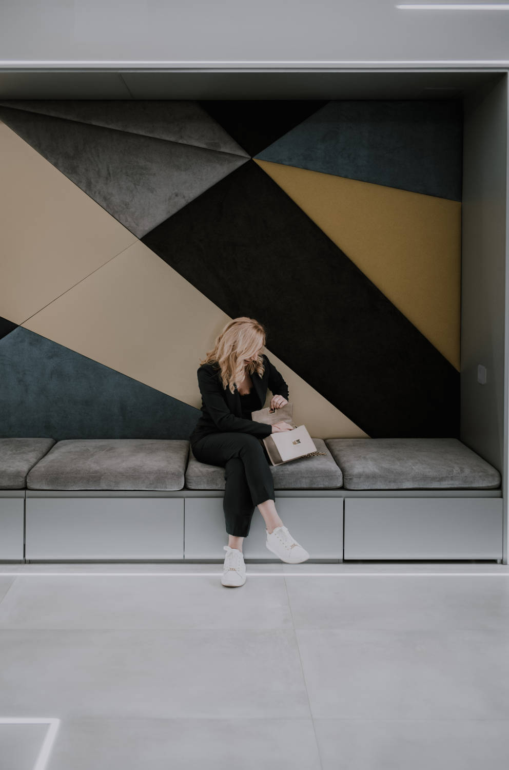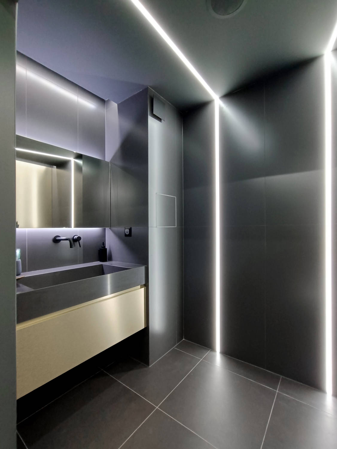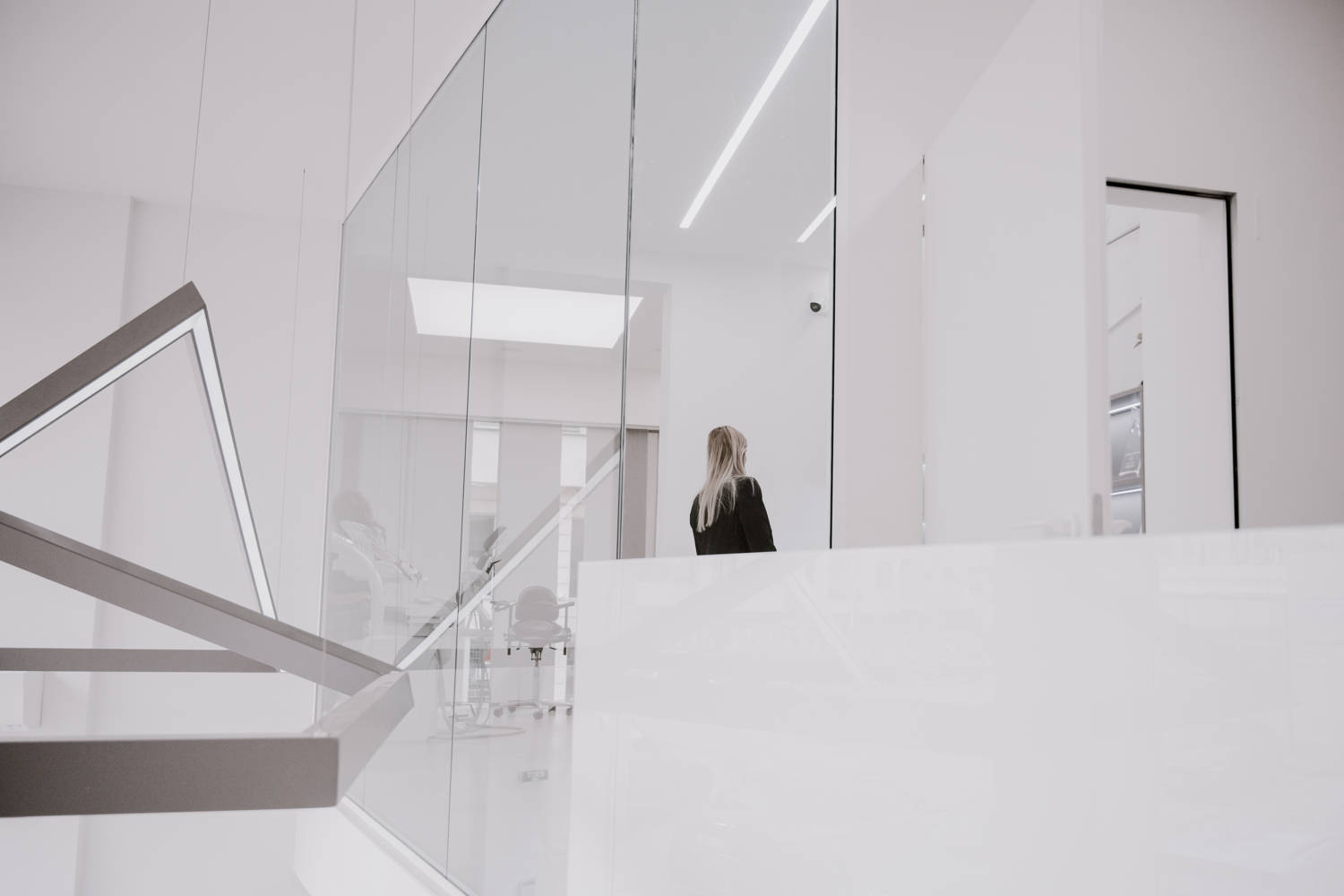 Модерна дентална клиника, в която светлина, текстури и линии се пресичат, за да създадат една футуристична и запомняща се визия.